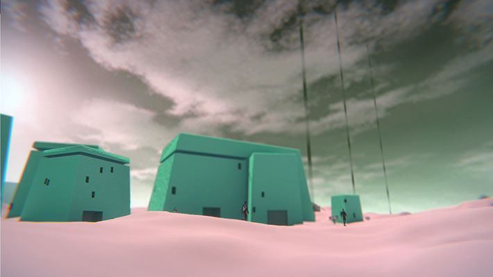 You wake up again, and you wonder where you are this time. There is sand all around you, behind you is a small city. Is this a dream? You see strange unrecognisable characters slowly and monotonously walking towards something you cannot see. A soft female voice tells you to follow them.