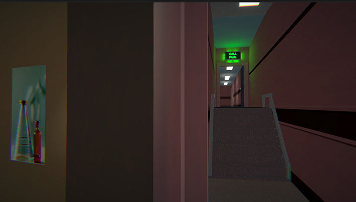 A semi-sarcastic character answers the phone, telling a scary story about a recently escaped patient, and to find the first hallway to the right after the first blue door up the stairs, looking out for a fire extinguisher. Paul will give you the wrong instructions, but on following him, you will unlock the most endings possible opening up at once.