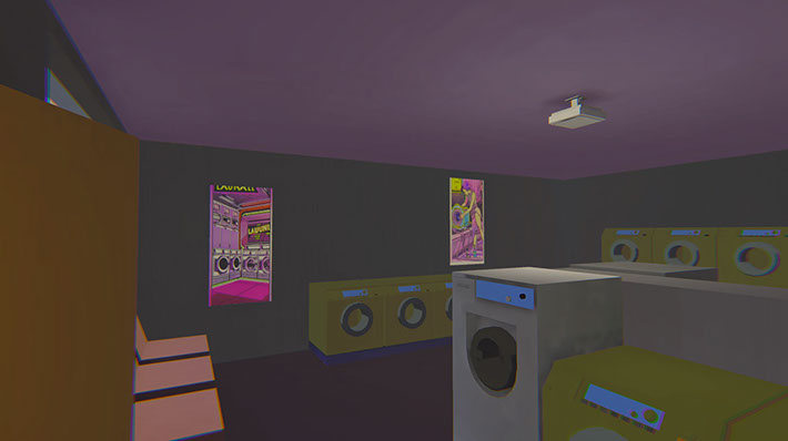 On passing the person to the right and following the signs to the laundromat, the player ends up in the laundromat with +2 points. When walking towards the mirror inside, the next level loads.