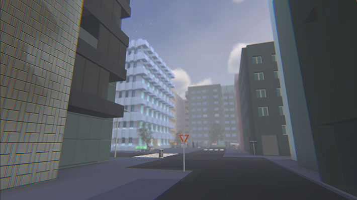 on passing the person to the left, the player can wander around in the city where not much is happening apart from the buildings becoming more and more red, signing the player that this is not the way [after 2 minutes, +1].